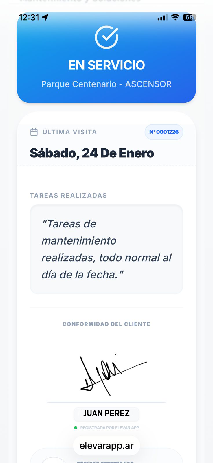 El técnico escanea y accede al historial completo.