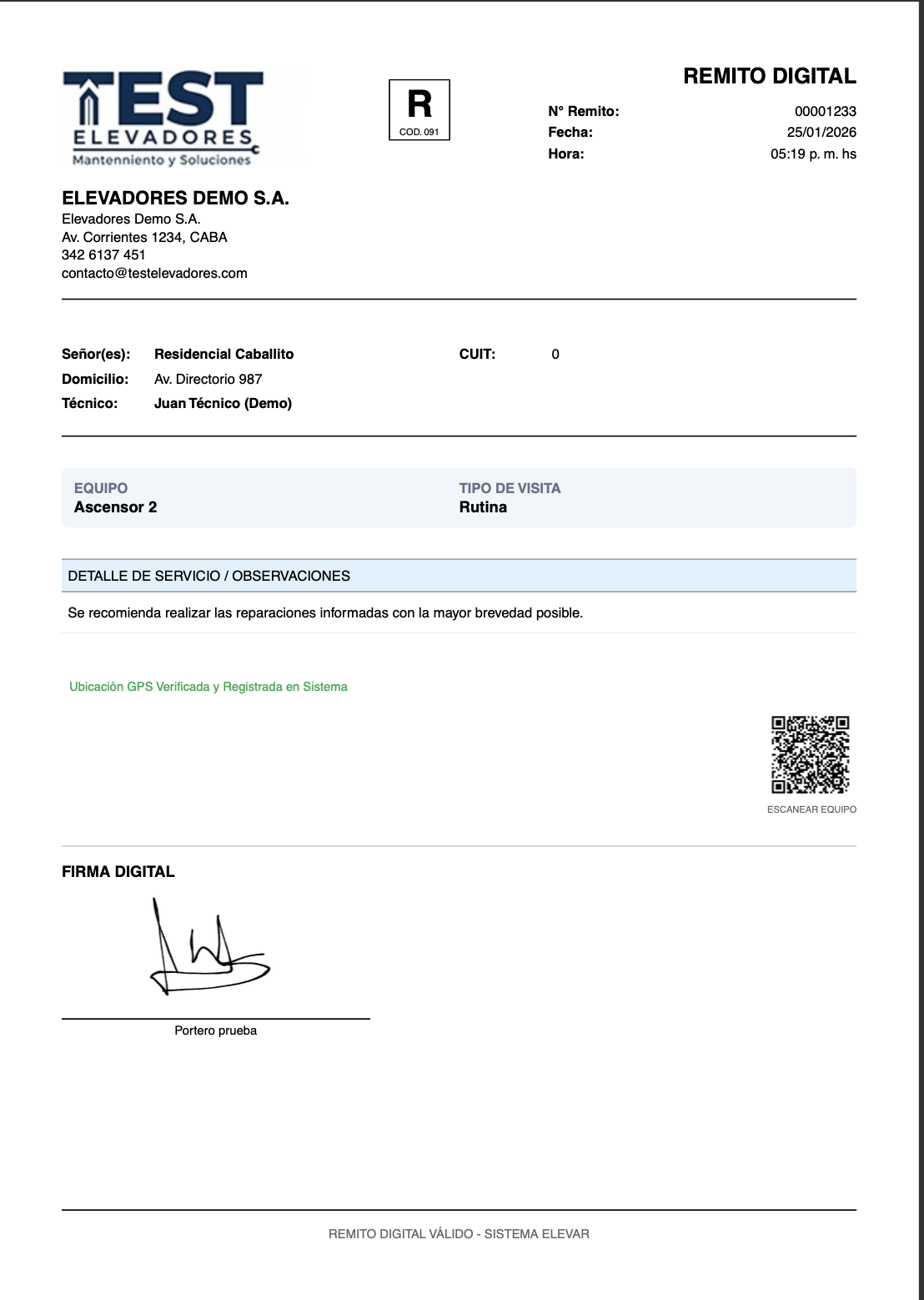 PDF automático con firma y QR vinculado.